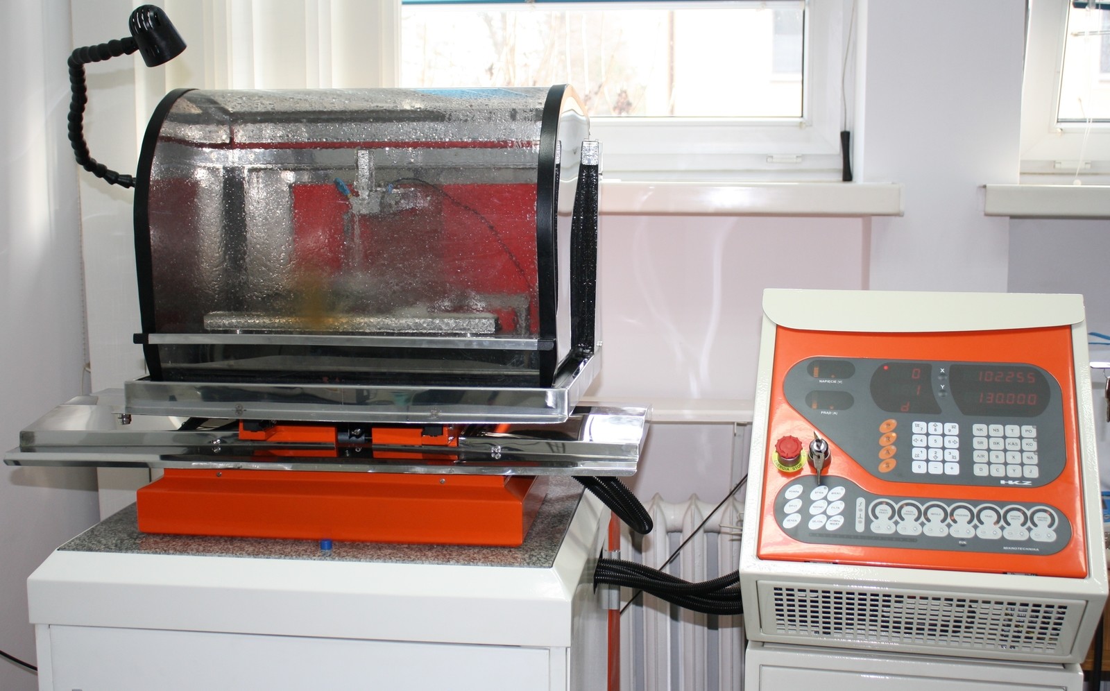 • Drążarka drutowa BP95d- (2-osiowa) służy do wycinania detali w materiałach przewodzących prąd elektryczny (miedź, aluminium, stal, spieki) metodą elektroiskrową przy pomocy drutu przesuwającego się w prowadnicach- pionowo do stołu. W Katedrze wykorzystywana jest do wycinania mniejszych próbek z dużych detali.