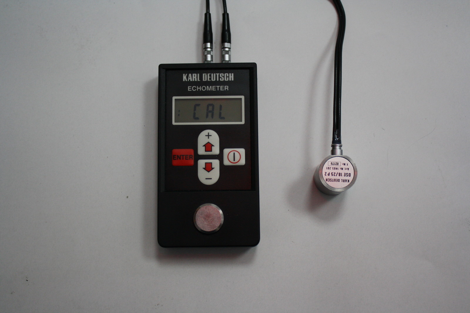 - Echometer 1073 firmy Karl Deutsch Jest to prędkościomierz-grubościomierz, służący do pomiarów prędkości podłużnej fali ultradźwiękowej lub grubości materiału.