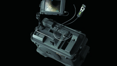 - Videoskop Olympus. W skład tego urządzenia wchodzi mikrokamera umieszczona na końcu elastycznego przewodu (o średnicy 4mm i długości 3m) oraz źródło światła doprowadzone światłowodem. Dzięki temu istniej możliwość oglądania obrazów w tak newralgicznych elementach konstrukcji jak komory spalania i turbiny. System ten umożliwia nie tylko wizualizację uszkodzenia, ale również wykonanie niezbędnych geometrycznych pomiarów zaistniałego uszkodzenia (pęknięcia, rysy, obszaru korozji).