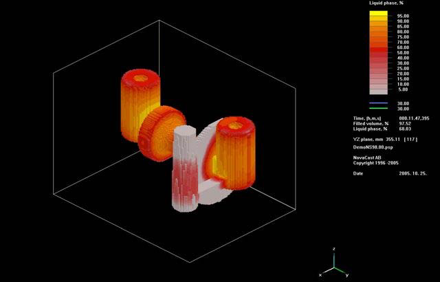 - Oprogramowanie NovaFlow & Solid umożliwia symulację procesu zalewania formy grawitacyjnej oraz ciśnieniowej. Symulację przeprowadza się na dowolnym stopie odlewniczym. Oprogramowanie umożliwia zmianę materiału z jakiego wykonano formę odlewniczą, pokrycia formy, osłonki egzotermiczne oraz izotermiczne. Symulację prowadzić można pod względem izoterm w odlewie lub formie, powstawaniu porowatości, szybkości stygnięcia.